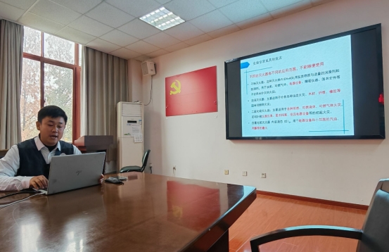 本次培训采用“理论授课+实战演练”相结合的模式,确保学用结合、学以致用。理论培训环节在学院会议室举行,唐教官围绕实验室消防安全、化学品泄漏处置、应急疏散规范等核心内容,通过PPT演示、典型事故案例剖析等方式,系统讲解不同类型灭火器适用场景、“提拔握压”操作要领,以及烟雾环境下疏散逃生技巧,重点强调实验室安全隐患排查要点与应急处置流程,引导师生深刻认识实验室安全的重要性与紧迫性。